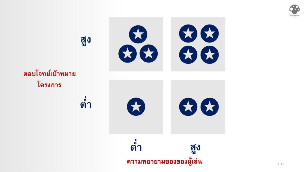 ทีนี้ พอมาจับชนกันเราก็จะได้ออกมาเป็น 4 ระดับ ซึ่งพอเราเอามาเทียบกับเกมมิฟิเคชันสำหรับออกกำลังกายของเรา ก็จะได้แบบนี้