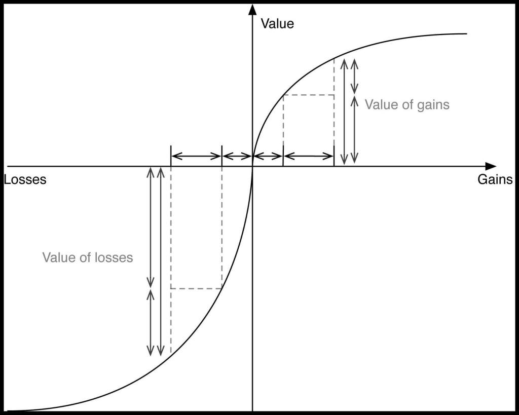 ยกตัวอย่างให้พอเห็นภาพนะครับ การเสียเงิน 100 บาทกับการได้เงิน 100 บาท เราก็ควรที่จะเสียใจ 100 หน่วย หรือ ดีใจ 100 หน่วยเท่ากันใช่มะ… แต่การทดลองพบว่า เสียเงิน 100 บาทเนี่ย เราเสียใจ 200 หน่วยเลยทีเดียว ในขณะที่ได้เงิน 100 บาท เรากลับดีใจแค่ 100 หน่วย